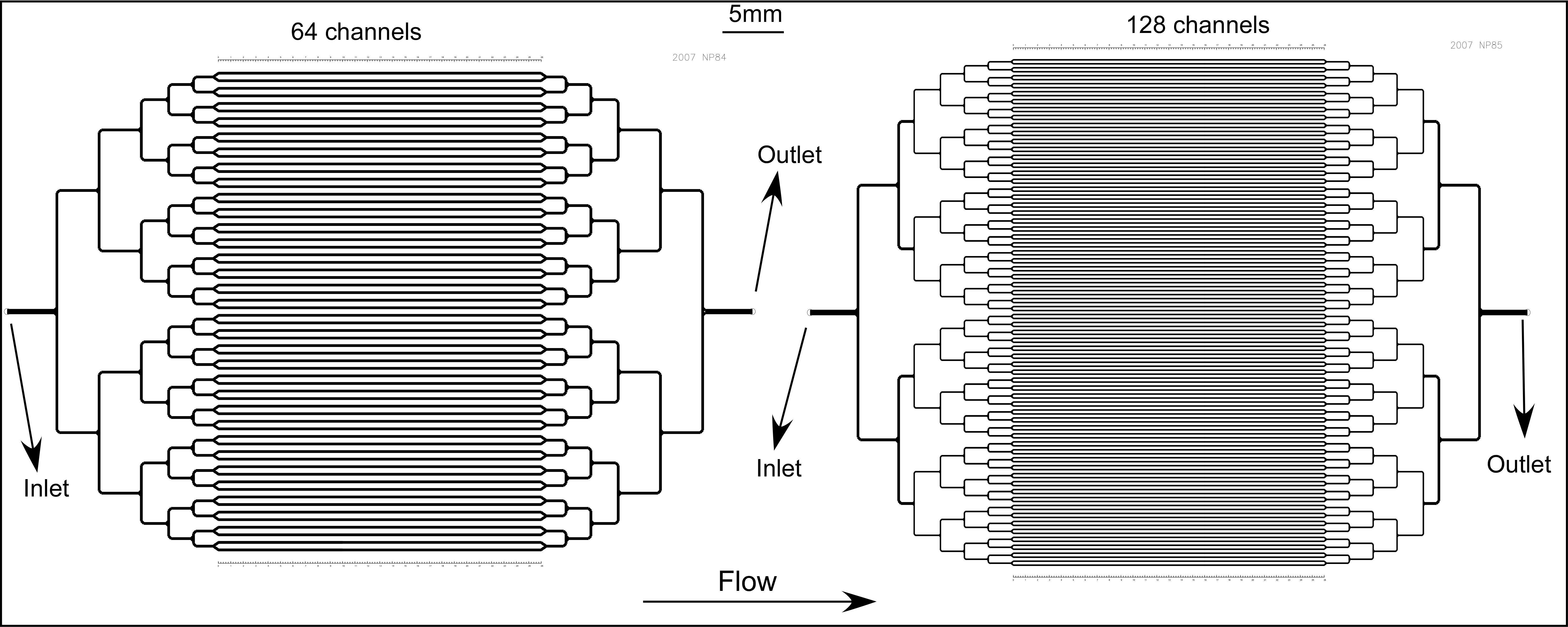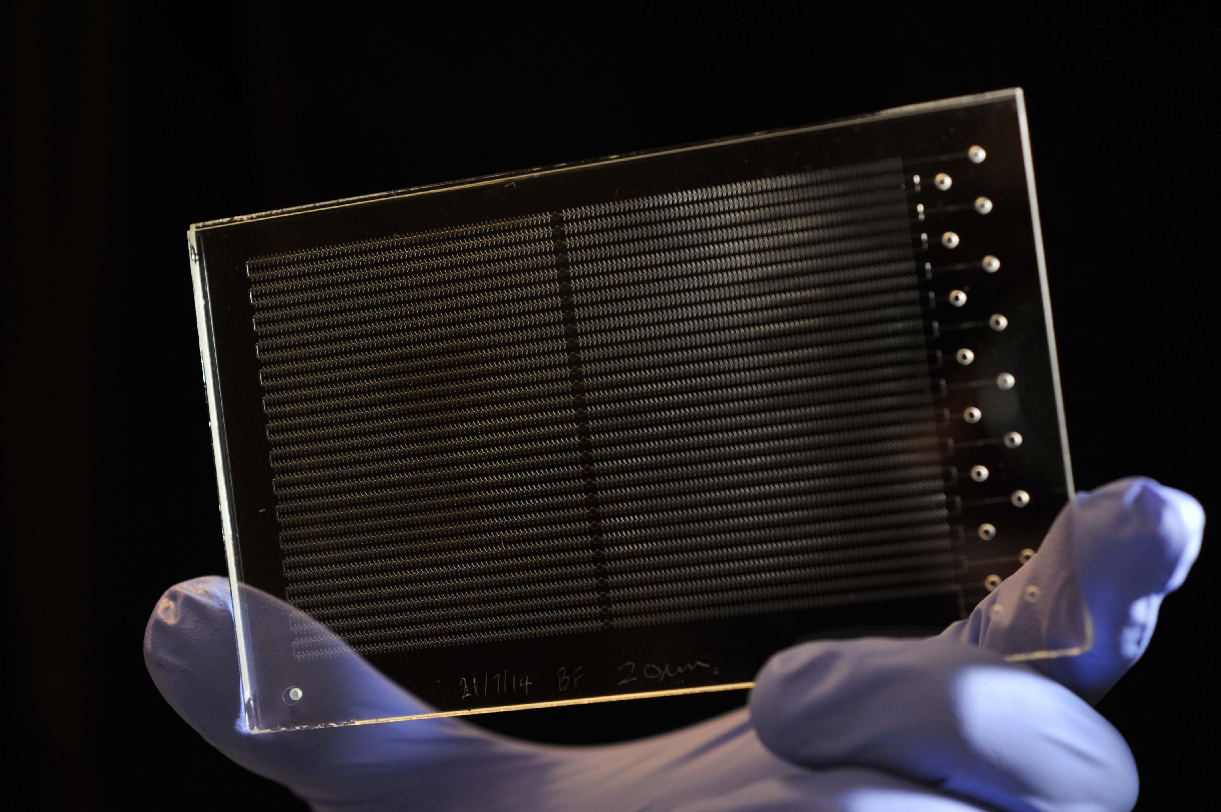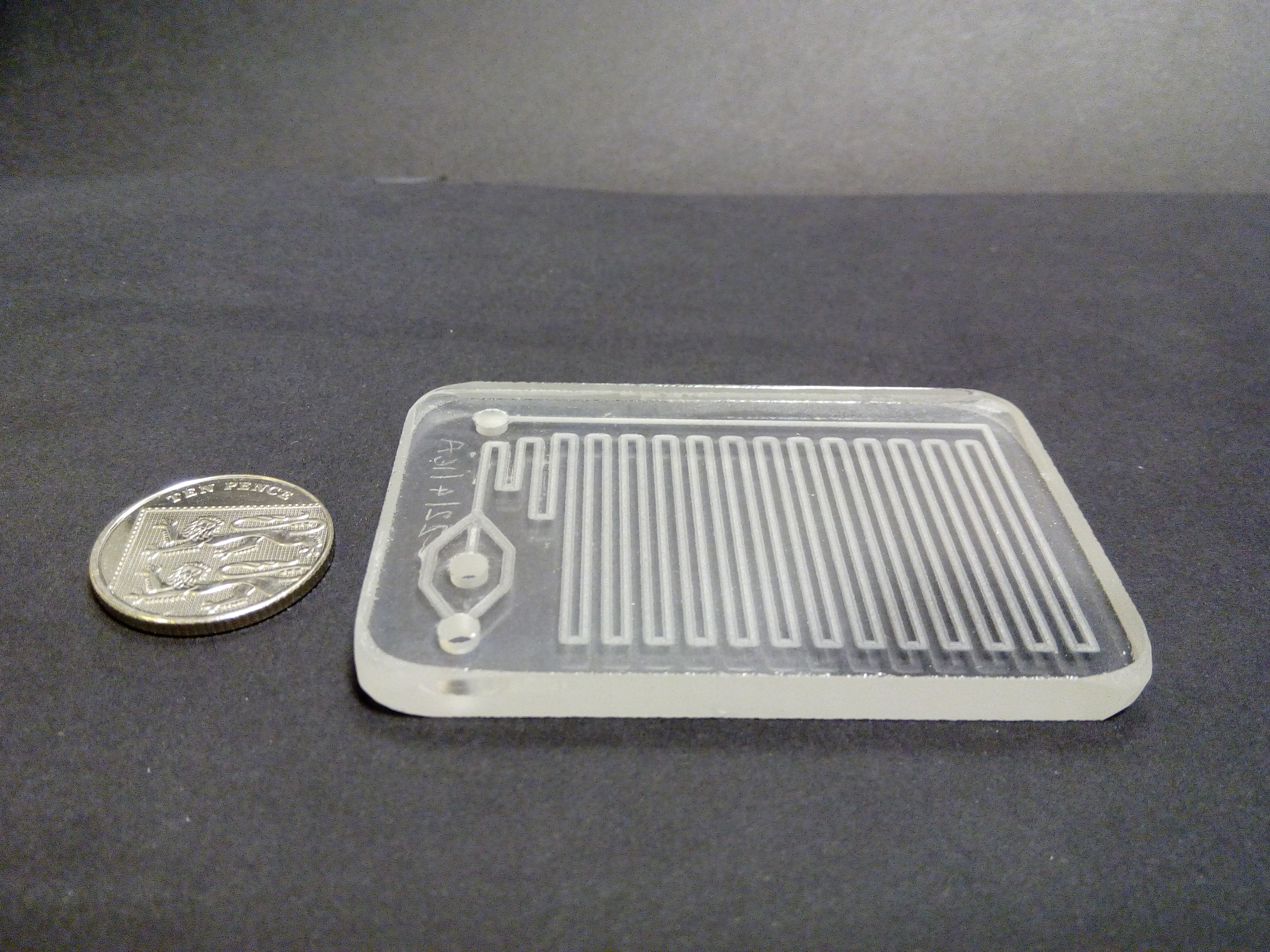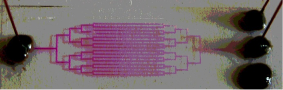 We have developed a range of flow cells to carry out flow chemistry. These are usually fabricated in glass due to its chemical and temperature resistance. We have long serpentine channels as well as parallel branched channel systems and systems for droplet microfluidics.