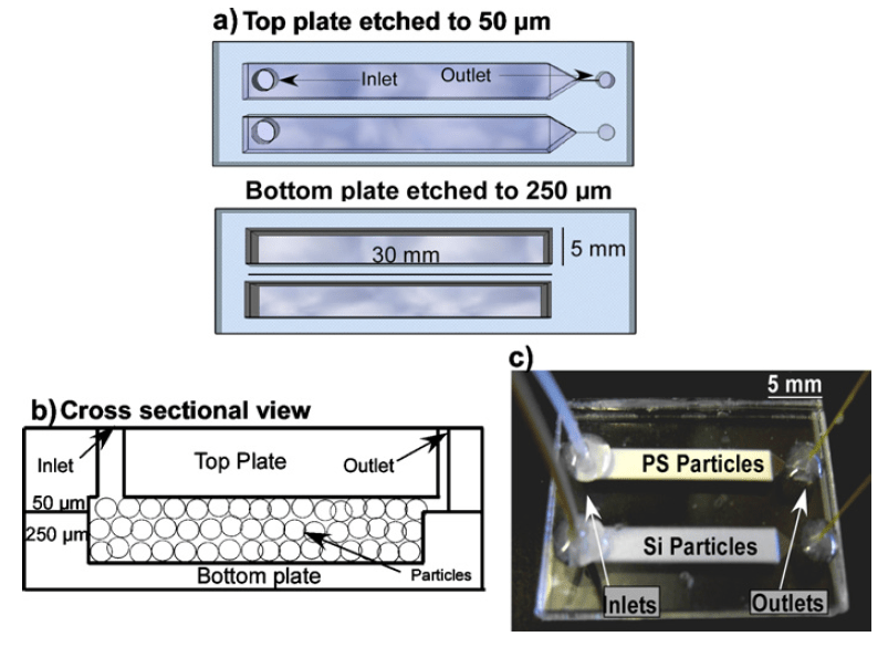 Regenerable anion exchange chips. As part of the EU-funded Radiochemistry on Chip (ROC) project, we developed modules for trapping of 18F radionuclide. The chips featured a flow through chamber packed with functionalised silica and polystyrene beads. This allowed over 20 trap-and-release cycles to occur with no significant loss of capacity with a single cycle requiring 6 minutes. Publication: F. De Leonardis et. al., J. Chromatogr., 2011, 1218, 4714