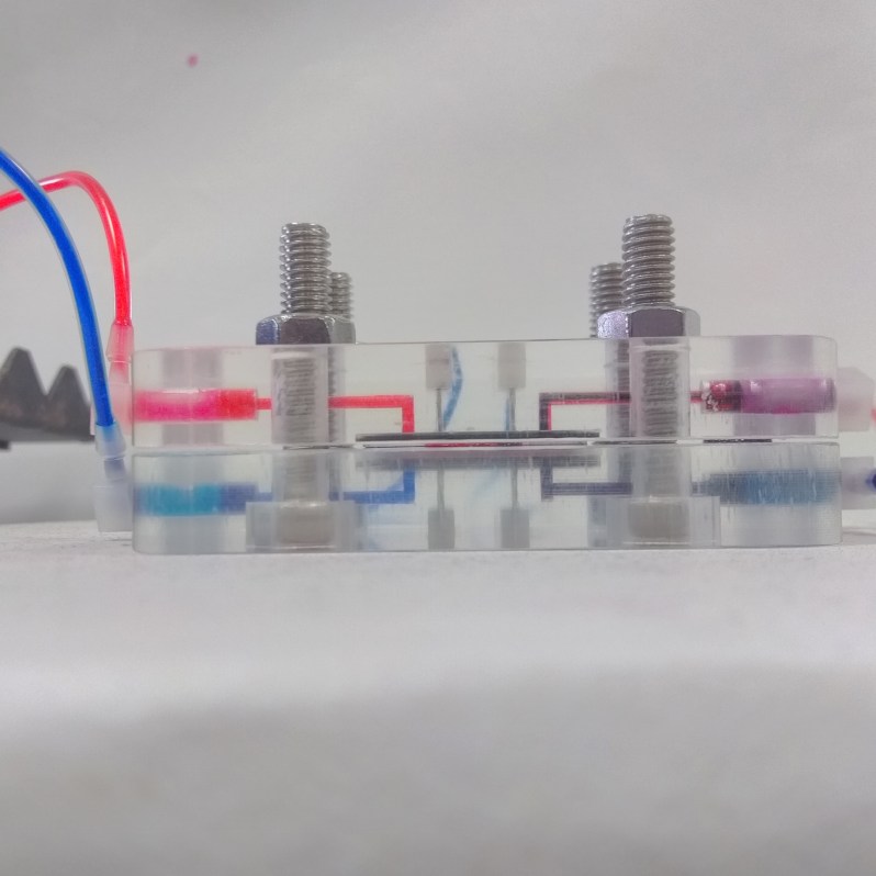 Here is an example of a glass microfluidic flow cell developed in collaboration with Dr Isabel Pires (University of Manchester) with chambers that allow placement, study and microscopic observation of spheroids. These have been applied to investigate the effects of hypoxia on cancer cells.
